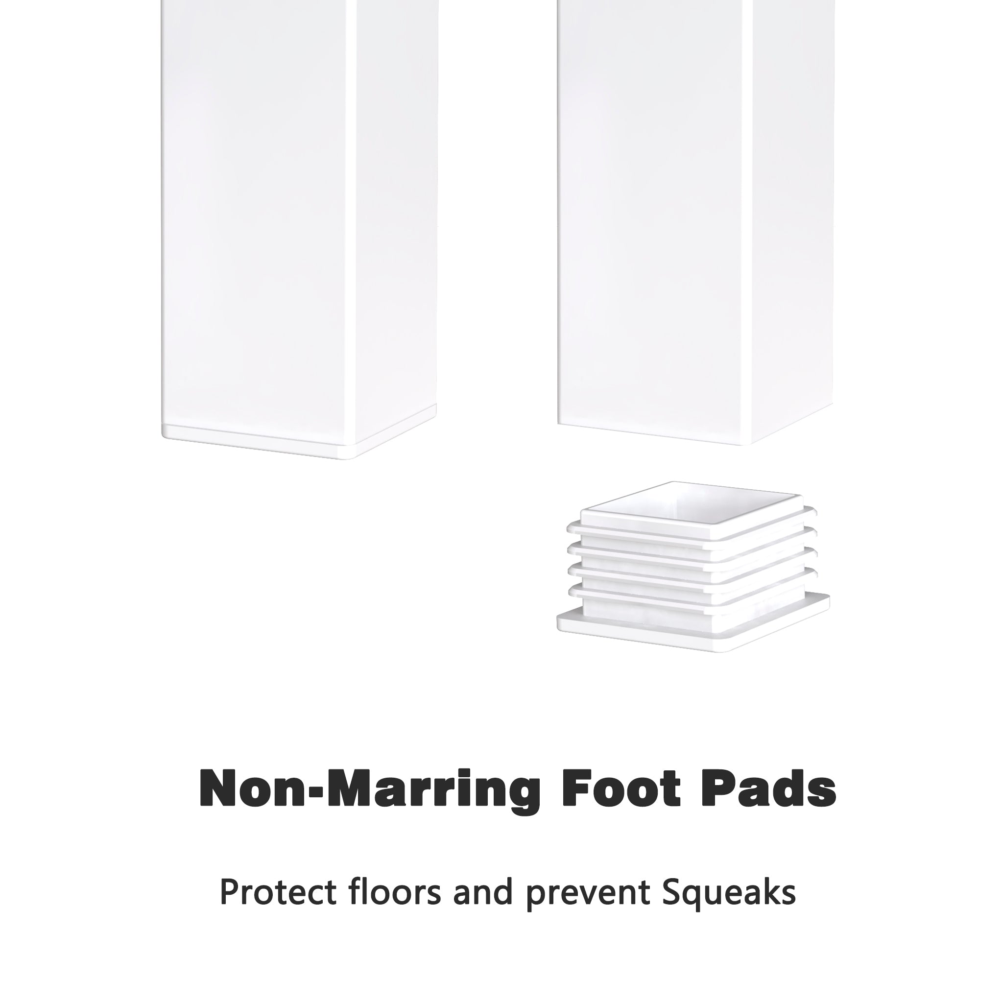 Plastic end caps protect floors and prevent squeaks.